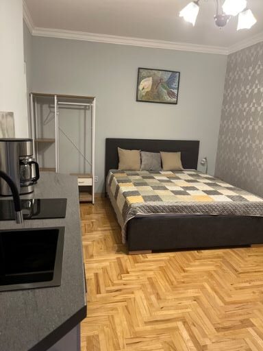 W skład apartamentu wchodzi duży pokój, w którym znajduje się wygodne podwójne łóżko, zapewniające doskonały sen i relaks. Dodatkowo, w pokoju znajdziesz telewizor, abyś mógł cieszyć się ulubionymi programami i filmami w komfortowej atmosferze.
